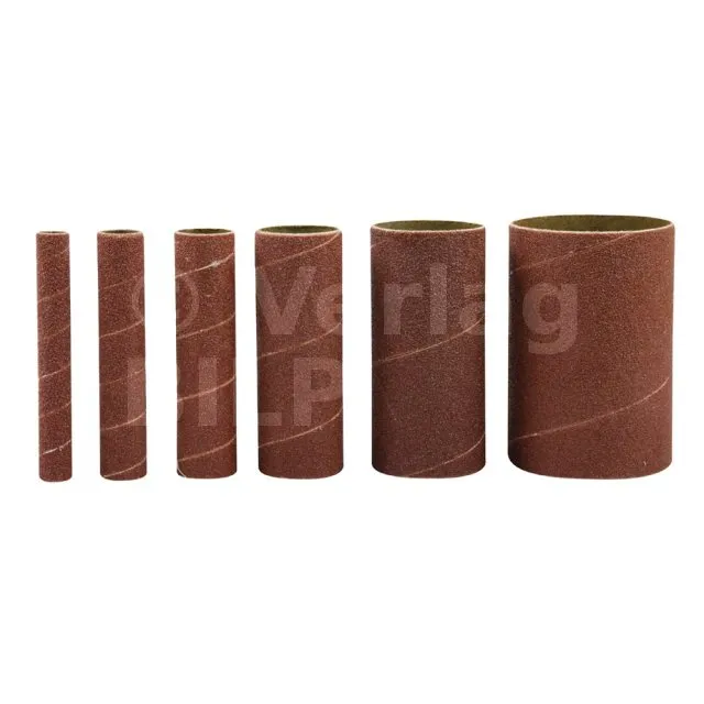 6er-Packung Schleifhülsen auf festem Gewebeträger. Für den Einsatz mit der Triton-Spindelschleifmaschine TSPS450. Satz enthält folgende Größen: 13, 19, 26, 38, 51 und 76 mm. Länge: 115 mm.