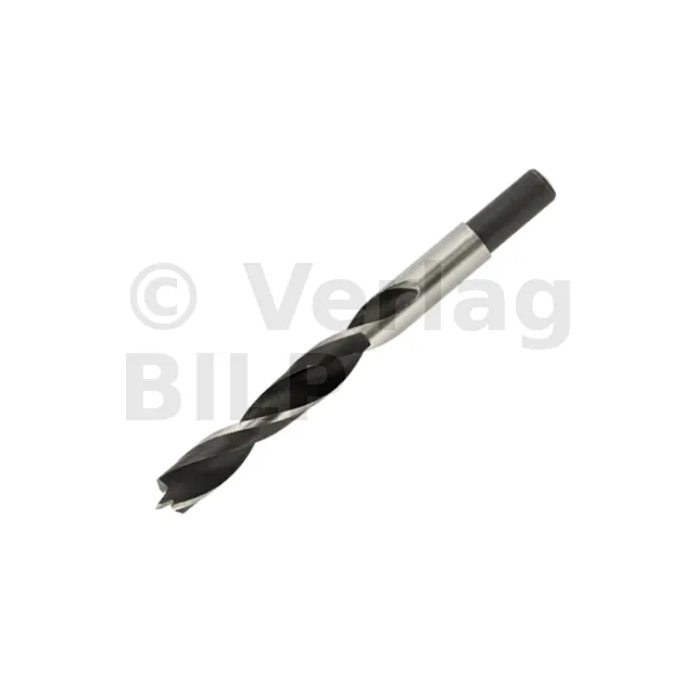 Hartmetallbohrer mit Zentrierspitze und zwei Schulternschneider. Die Zentrierspitze ermöglicht eine präzise Positionierung des Bohrers. Für Natur- und Kunstholz.