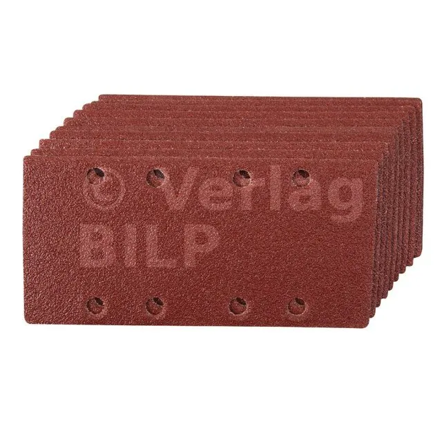 Korund. Vorgestanzt für Schleifmaschinen mit 93 x 190-mm-Schleifblättern. Kletthaftung erlaubt schnelle Schleifblattwechsel