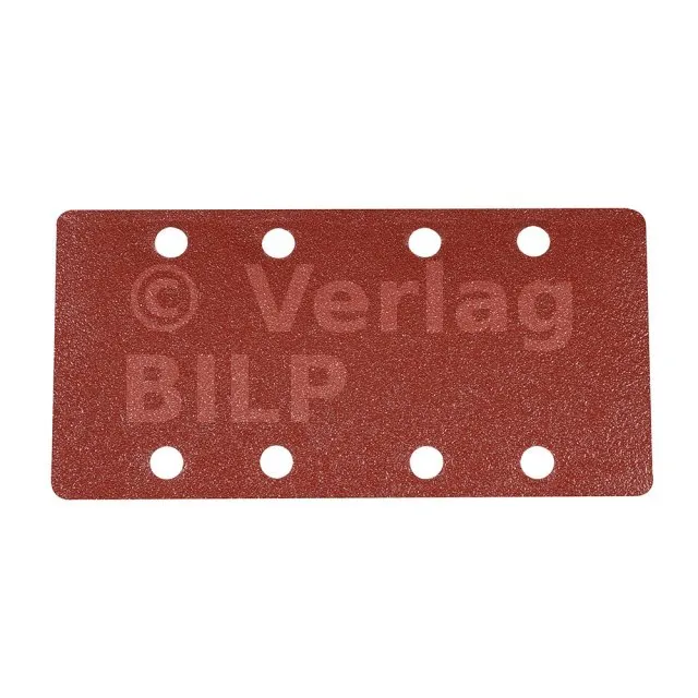 Korund. Vorgestanzt für Schleifmaschinen mit 93 x 190-mm-Schleifblättern. Kletthaftung erlaubt schnelle Schleifblattwechsel.