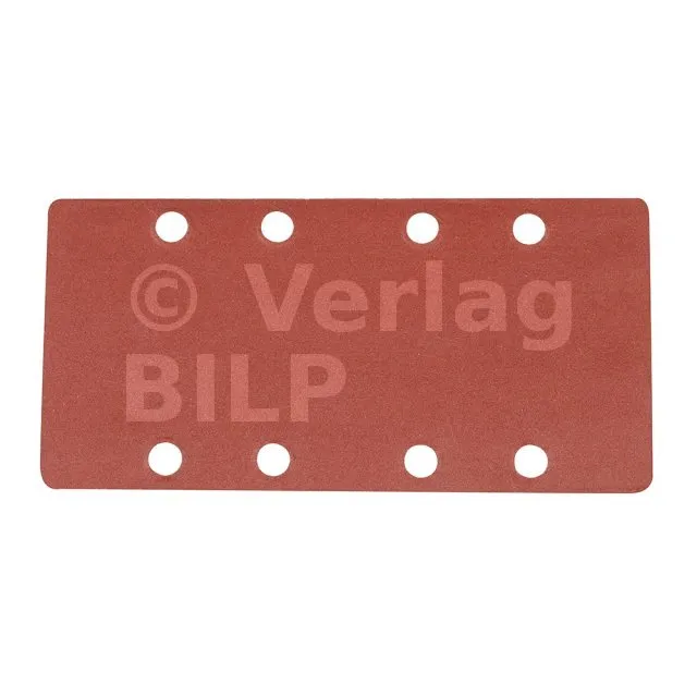 Korund. Vorgestanzt für Schleifmaschinen mit 93 x 190-mm-Schleifblättern. Kletthaftung erlaubt schnelle Schleifblattwechsel.