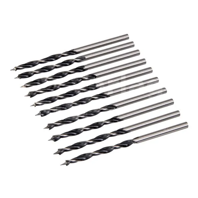 Bohrer aus hohem Kohlenstoffgehalt mit Zentrierspitze und Doppelschneide. Die Zentrierspitze ermöglicht eine präzise Positionierung des Bohrers. Für Natur- und Kunstholz.