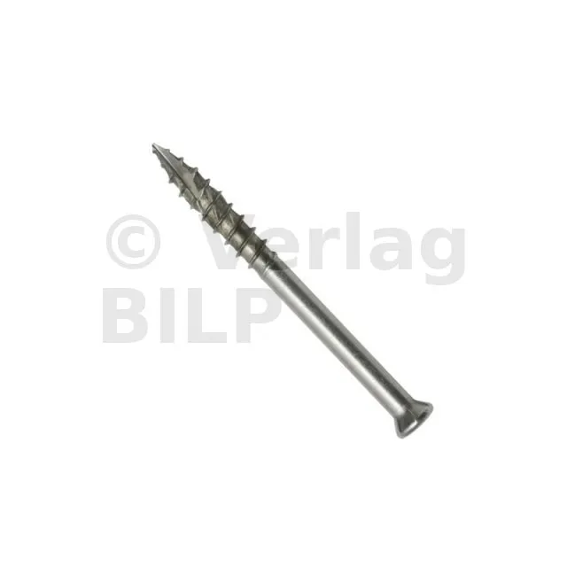 Die Terrassenschraube Edelstahl A4 ist aufgrund ihrer sehr hohen Witterungs- und Gerbsäurebeständigkeit besonders für die Befestigung von Terrassenholz und anderen Holzbefestigungen im Außenbereich zu empfehlen. Darüber hinaus eignet er sich für alle Befestigungen am Meer, im Schiffbau oder in der Nähe von Schwimmbädern.