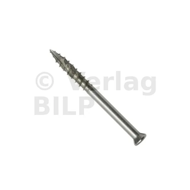 Die Terrassenschraube Edelstahl A4 ist aufgrund ihrer sehr hohen Witterungs- und Gerbsäurebeständigkeit besonders für die Befestigung von Terrassenholz und anderen Holzbefestigungen im Außenbereich zu empfehlen. Darüber hinaus eignet er sich für alle Befestigungen am Meer, im Schiffbau oder in der Nähe von Schwimmbädern.
