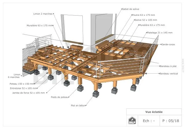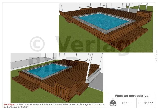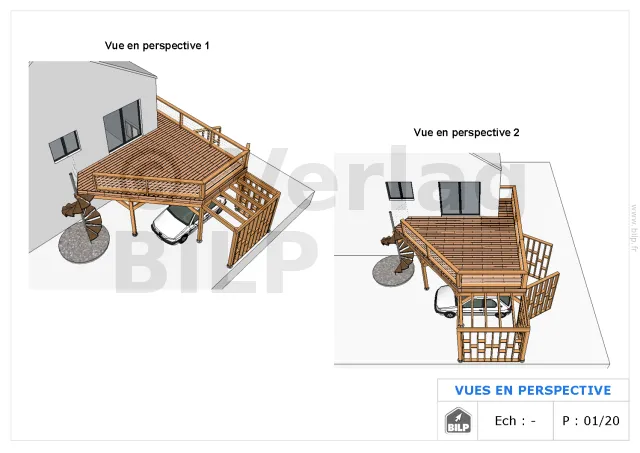 Lassen Sie dann Ihre Entwurfsaufgabe von einem Holzterrassenexperten erstellen. Wir werden Zeit miteinander verbringen (Telefon, E-Mail), um Ihre Bedürfnisse zu ermitteln, wir beraten Sie bei der Gestaltung. Von dort aus erstellen wir ein maßgeschneidertes technisches Dossier (detaillierte Pläne der Realisierung, Perspektivpläne, Stückliste und Materialliste, 2D-Simulationsvideos).