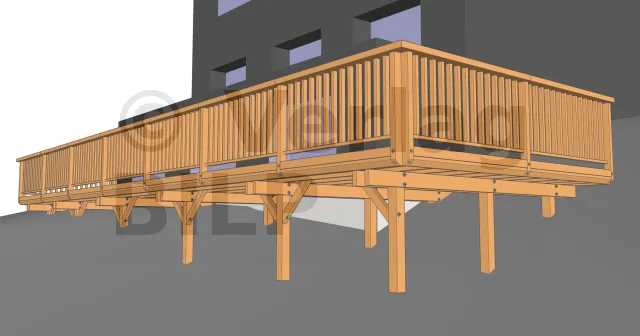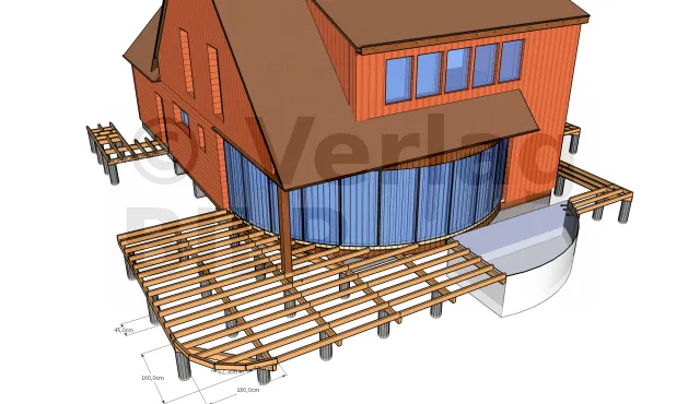 Maßstabsgetreue Konstruktionszeichnungen sind leicht zu lesen und zu verstehen. Sie ermöglichen es Ihnen, Ihre eigene Terrassenstruktur zu bauen. Die Einzelheiten der Realisierung sind angegeben. Wir berechnen und optimieren die Abmessungen und Querschnitte der Holzteile.