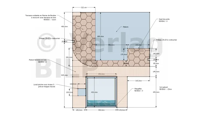 - Inhalt3D-Ansichten, Strukturpläne, Grundrisspläne, detaillierte Baupläne, Materialliste, 3D-Animation Ihrer zukünftigen Terrasse, telefonische Unterstützung