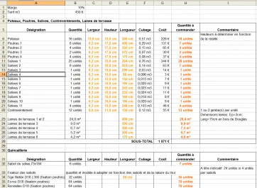 Diese Liste kann für einen Kostenvoranschlag direkt an Ihren Materialhändler geschickt werden. Die Liste liegt im EXCEL-Format vor. Sie können sie also bearbeiten, modifizieren, Ihre Informationen hinzufügen usw.
