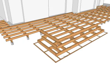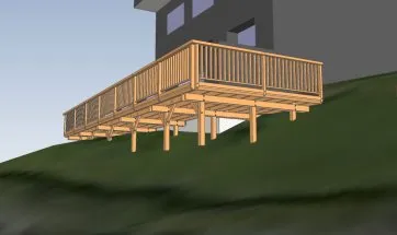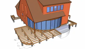 Maßstabsgetreue Konstruktionszeichnungen sind leicht zu lesen und zu verstehen. Sie ermöglichen es Ihnen, Ihre eigene Terrassenstruktur zu bauen. Die Einzelheiten der Realisierung sind angegeben. Wir berechnen und optimieren die Abmessungen und Querschnitte der Holzteile.