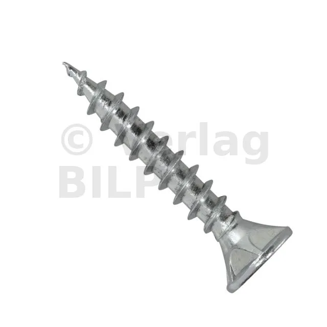 - 40% schneller als herkömmliche Schrauben durch optimiertes Gewinde