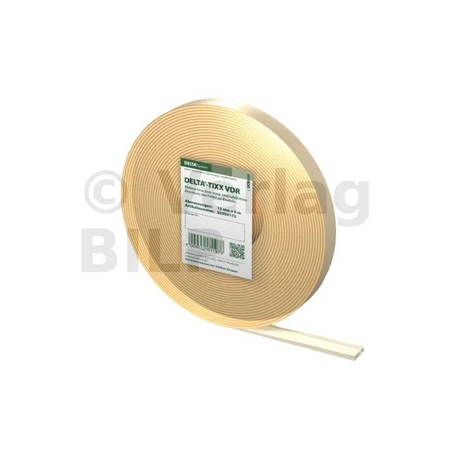 Verstärktes doppelseitiges Klebeband in Rollen auf Acrylharzbasis mit abziehbarer Folie auf der Unterseite. Sorgt für Luftdichtheit beim Anschluss von DELTA® -Dampfsperren an Außenwänden, Flügelrahmen usw.