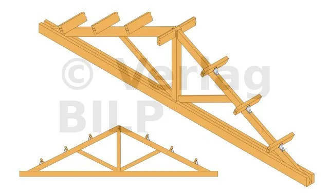 Getragen: Massivholz, Verbundholz, Brettschichtholz, Dreiecksbinder.