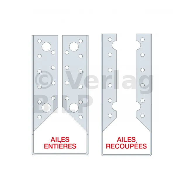 Der SAI-Balkenschuh mit innenliegenden Schenkeln ist eine Variante des Balkenschuhes mit außenliegenden Schenkeln, die eine größere Diskretion bei der Montage ermöglicht. Sie wird für besondere Fälle wie Eckverbindungen verwendet.