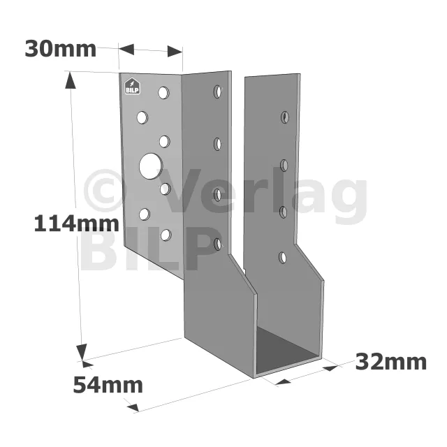 2 mm dicke Modell. Es ist der erste Balkenschuh, der aus einer Studie nach den Vorgaben des Eurocode 5 resultiert.