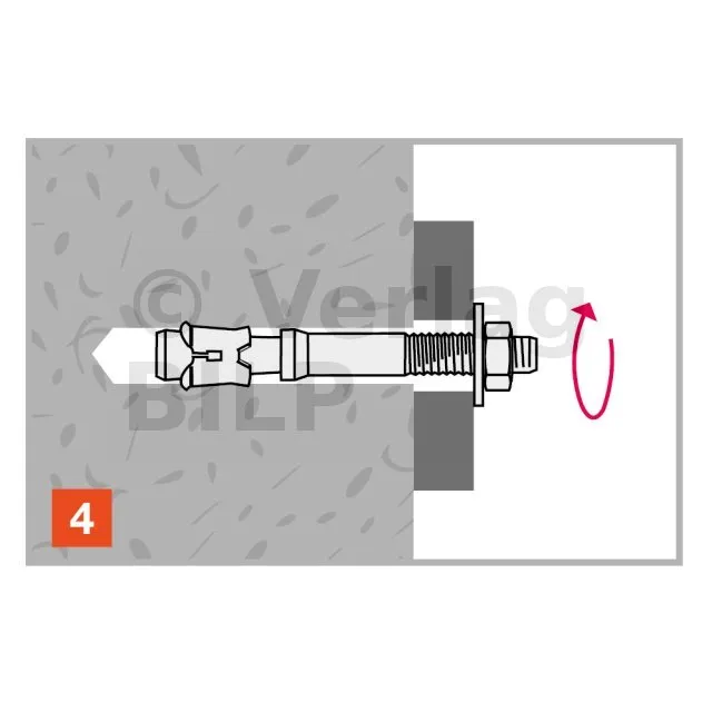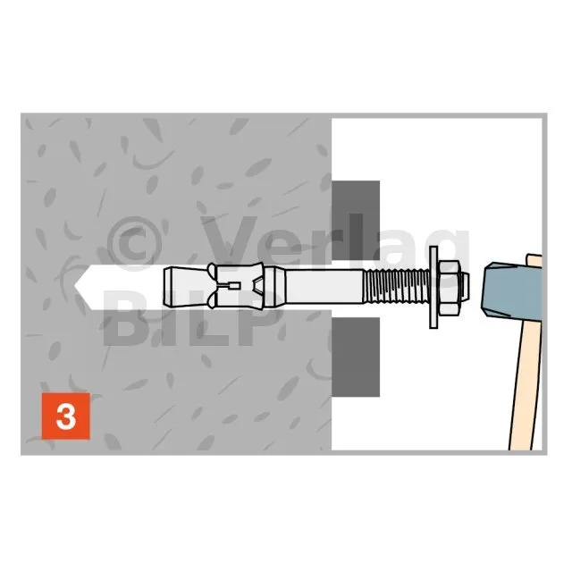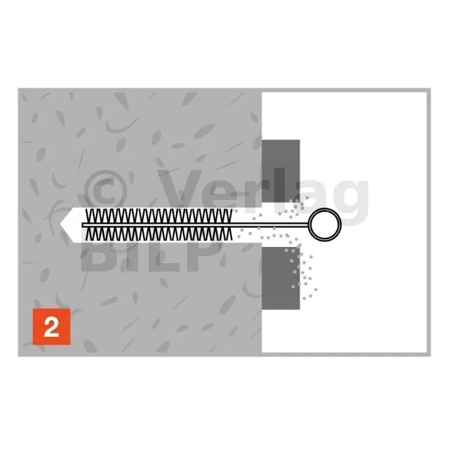 - Montage durch das zu befestigende Element, Bohr-Ø = Dübel-Ø,
