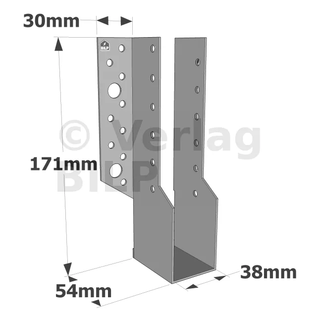 2 mm dicke Modell. Es ist der erste Balkenschuh, der aus einer Studie nach den Vorgaben des Eurocode 5 resultiert.
