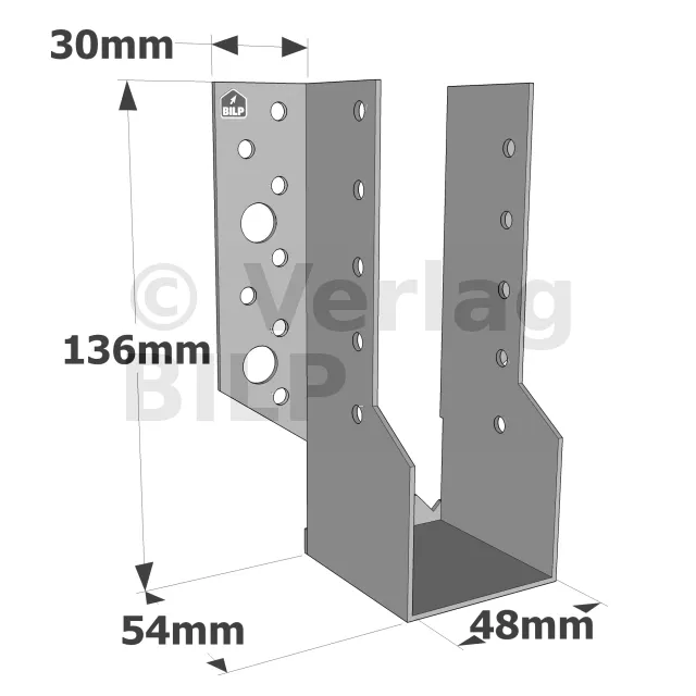 2 mm dicke Modell. Es ist der erste Balkenschuh, der aus einer Studie nach den Vorgaben des Eurocode 5 resultiert.