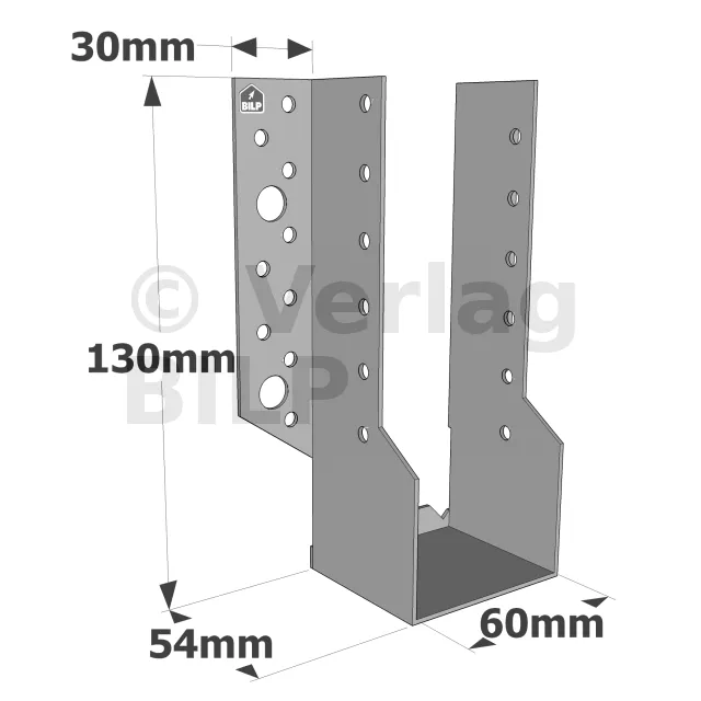 2 mm dicke Modell. Es ist der erste Balkenschuh, der aus einer Studie nach den Vorgaben des Eurocode 5 resultiert.