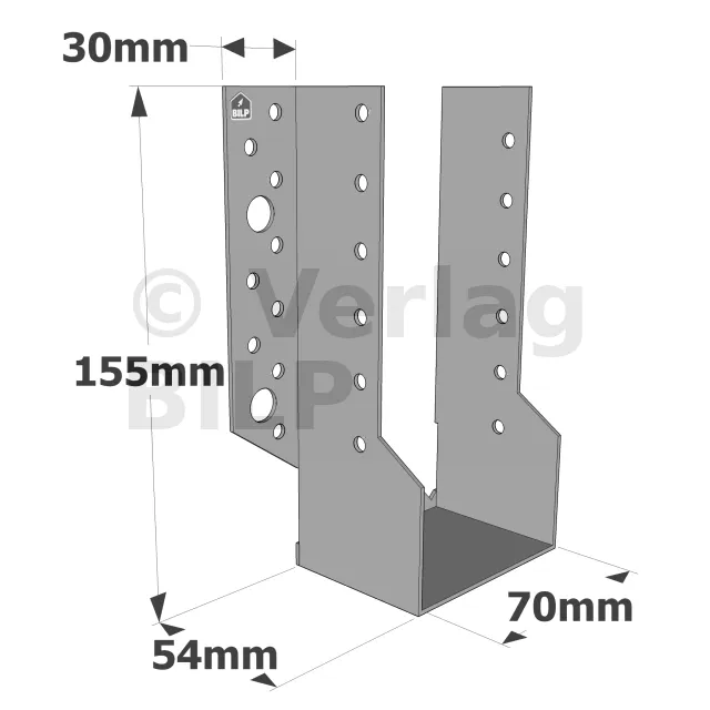 2 mm dicke Modell. Es ist der erste Balkenschuh, der aus einer Studie nach den Vorgaben des Eurocode 5 resultiert.
