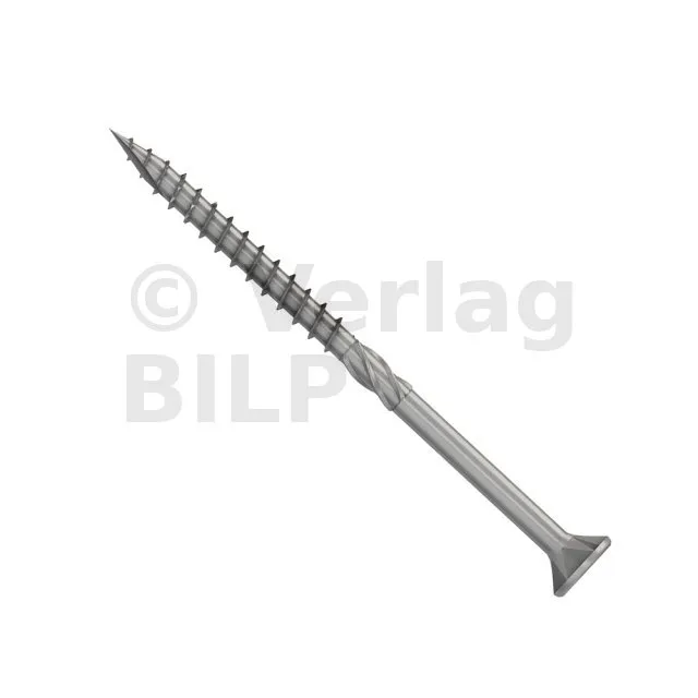 - Eine Schraube, deren Achse bei ESCR(XXX) 45 bis 90° von der Holzmaserung und bei den anderen Schrauben 90° von der Holzmaserung entfernt ist.