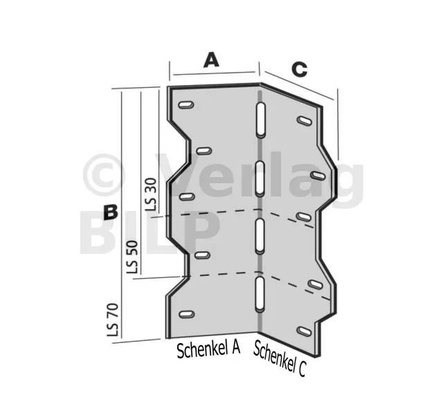 | Referenzen | Abmessungen [mm] | Bohrungen Schenkel A | Bohrungen Schenkel B | |||