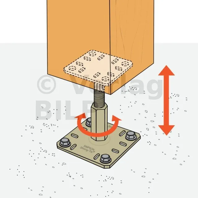 Die PPRC-Pfostenträger sind in der Höhe verstellbar. Sie sind einfach und schnell zu montieren und können auf der Baustelle verstellt werden.