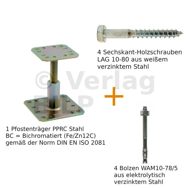 - 1 Pfostenträger PPRC aus dichromatisiertem Stahl,