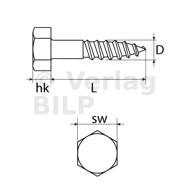 - Schraubentyp: Sechskant-Holzschraube.