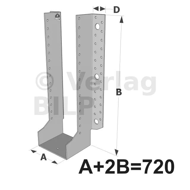 Große Balkenschuhe mit außenliegenden Schenkeln, GLE-Sortiment ECONOMIC (Größe 720mm, Dicke 2.5mm, Tiefe 90mm) - Réf. GLE720/2.5X