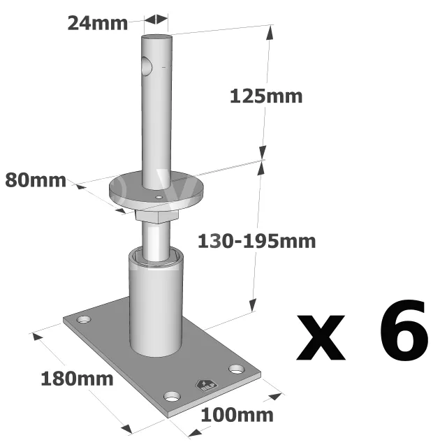 Verstellbarer Rohrpfostenfuß für hohe Belastungen - Réf. PGS24/130_6