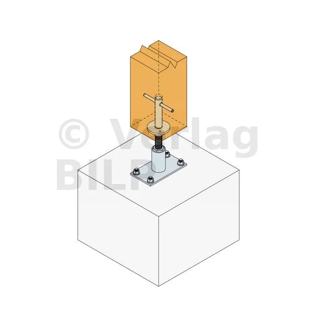 - Holzverbindung auf starrem TrägerAuf Pfosten : 4Ø8 (STD-Stabdübel) ; auf Beton : 2Ø12 (WA-Dübel ; Gewindestange)