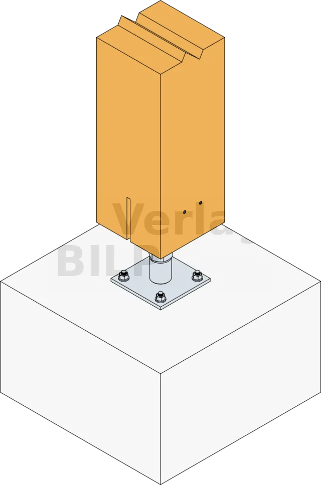 Der Hochlastpfostenträger PIBA110/160 ermöglicht durch seinen vertikalen Kern eine starke Lastrückgewinnung bei Druck sowie eine Rückgewinnung von Hubkräften.