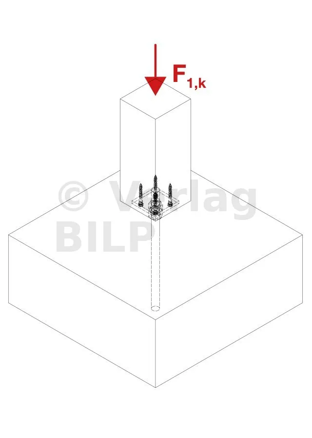 - Holzverbindung auf starrem TrägerAuf Pfosten: 2Ø8 (STD-Stabdübel oder Bolzen); auf Beton : 4Ø12 (WA-Stabdübel; Gewindestange)