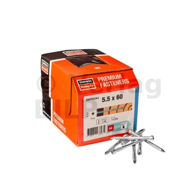 Im Allgemeinen erfordert die DSPROA4-Schraube kein Vorbohren des Holzes. Bei Tropenhölzern ist es ratsam, je nach Dichte des Holzes Versuche durchzuführen. Dann kann ein Vorbohren erforderlich sein.
