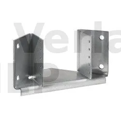 Dieser Balkenschuh ermöglicht die Aufnahme von Dachbindern in gemauerten Ecken mit einem Winkel von 90°. Er ist in der Breite wahlweise zwischen 76 und 150 mm faltbar und in der Breite 38 mm erhältlich.