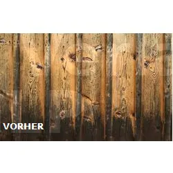- Stellt ein gleichmäßiges Aussehen des Holzes ohne Schleifen oder Reiben wieder her.