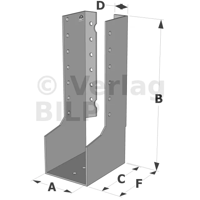 Der SAI-Balkenschuh mit innenliegenden Schenkeln ist eine Variante des Balkenschuhes mit außenliegenden Schenkeln, die eine größere Diskretion bei der Montage ermöglicht. Sie wird für besondere Fälle wie Eckverbindungen verwendet.