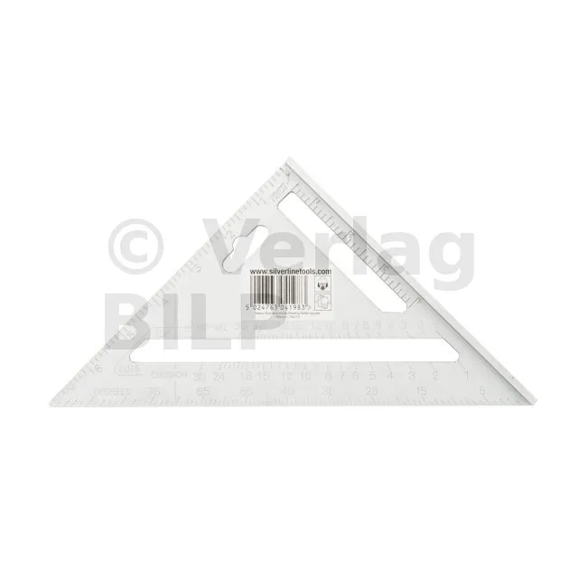 Hochbelastbarer Winkel aus Aluminiumgusslegierung, leicht ablesbare, erhabene imperiale Skalen und Umrechnungstabelle für die Sparrenmontage. Erhöhte Kanten für sicheren Stand. 0-90° Winkelmesserskala. Als Hilfsmittel beim Sägen für Winkelmessungen und Schnitte verwenden. Gewicht 125 g. Abmessungen : 185 x 185 x 260 mm.