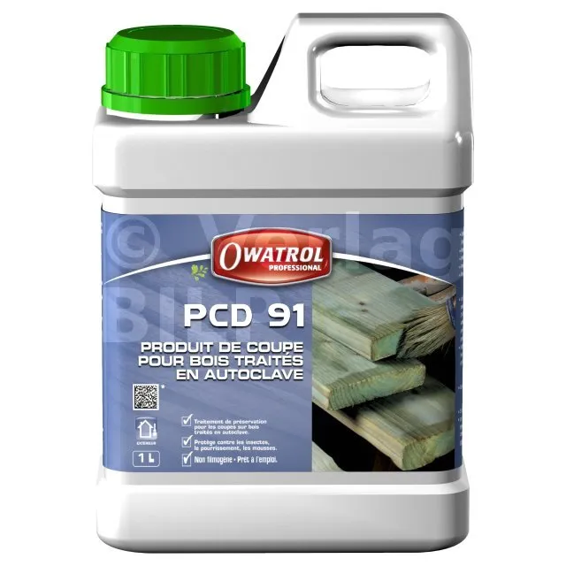 PCD 91 ist ein Produkt zum Schutz der Enden von autoklavbehandeltem Holz auf der Ebene von Schnitten und Ausbesserungen, die während der Umsetzung in der Werkstatt und auf der Baustelle vor einem nachfolgenden Schutzprodukt durchgeführt werden. Es enthält ein antimykotisches Trockenfilmschutzmittel.