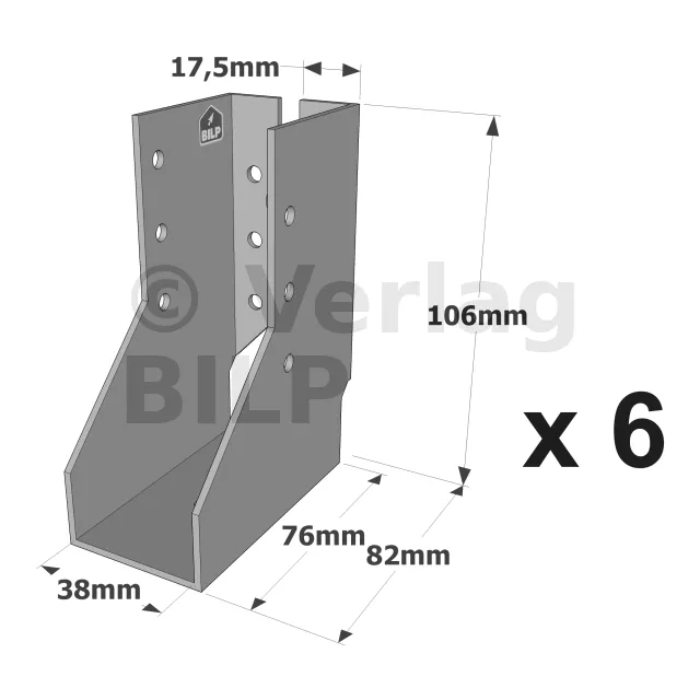 Zwischen der Dicke des Holzes und der Breite des Balkenschuhs ist eine Toleranz von maximal 2 mm zulässig. Beispiel : Ein auf 76 mm gebogener Balkenschuh kann eine Holzstärke von 74 mm tragen.