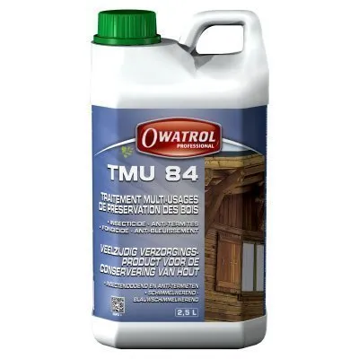TMU 84 NG ist ein Mehrzweck-Behandlungsprodukt für den Holzschutz. Es kann als präventive und kurative Behandlung eingesetzt werden.