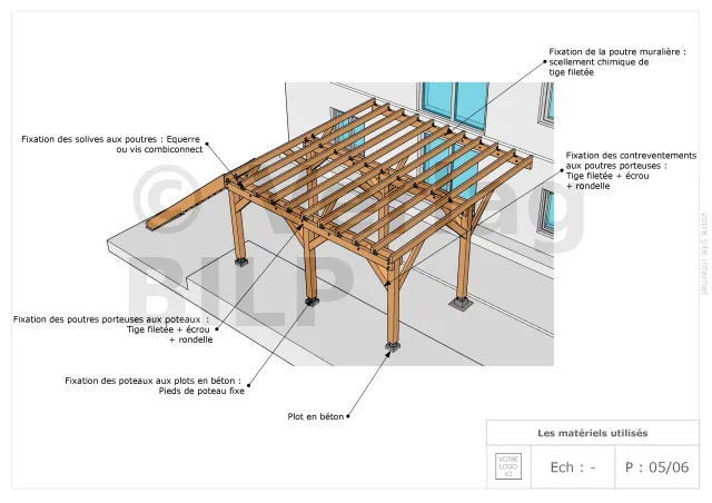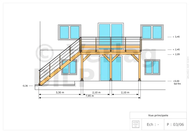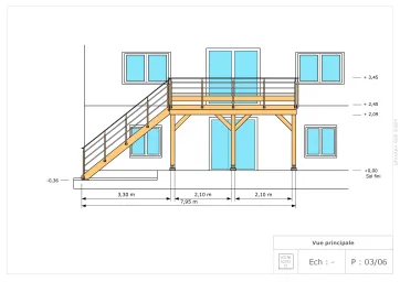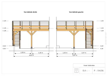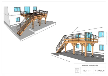 - Die Berechnung der Struktur Ihrer Terrasse (Dimensionierung der Holzelemente). Dies ist die Leistung : die Überprüfung der Pläne.