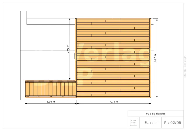 - Die Baupläne, detaillierte Pläne der Realisierung, eine Materialliste mit einem Kostenvoranschlag, eine 3D-Animation Ihrer zukünftigen Terrasse. Für diese Art von Dienstleistung bieten wir Ihnen den kompletten Service eines maßgeschneiderten Plans.