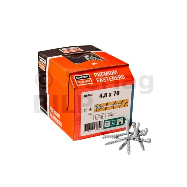 - Impreg®X4: exklusive Simpson Strong-Tie-Beschichtung aus 4 aufeinanderfolgenden Schichten, entspricht 70 μm Feuerverzinkung.