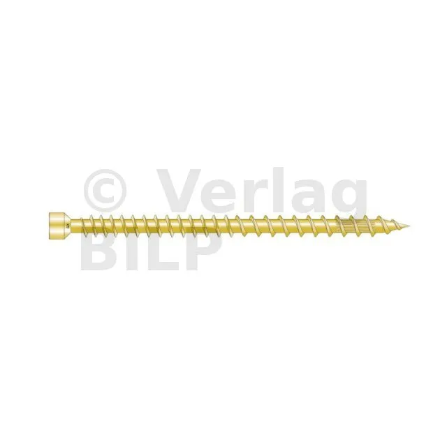 - Zylindrischer Kopf: Reduziert die Spaltung des Holzes und macht die Befestigung im Holz unsichtbar,