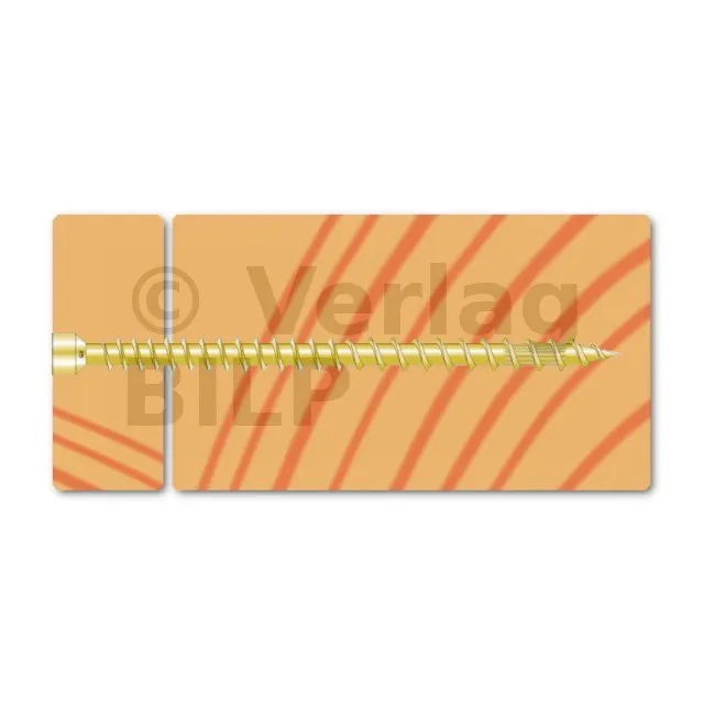 - Eine Schraube, deren Achse bei ESCR(XXX) 45 bis 90° von der Holzmaserung und bei den anderen Schrauben 90° von der Holzmaserung entfernt ist.
