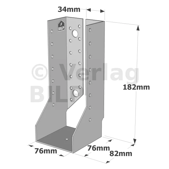 Zwischen der Dicke des Holzes und der Breite des Balkenschuhs ist eine Toleranz von maximal 2 mm zulässig. Beispiel : Ein auf 76 mm gebogener Balkenschuh kann eine Holzstärke von 74 mm tragen.