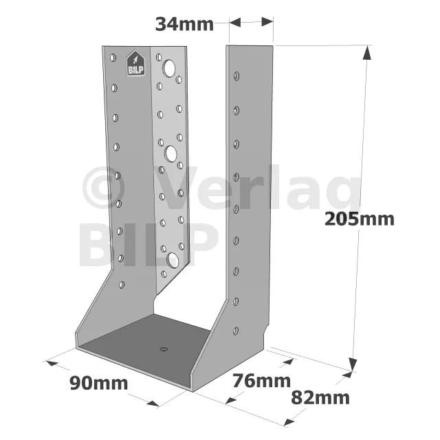 Zwischen der Dicke des Holzes und der Breite des Balkenschuhs ist eine Toleranz von maximal 2 mm zulässig. Beispiel : Ein auf 76 mm gebogener Balkenschuh kann eine Holzstärke von 74 mm tragen.