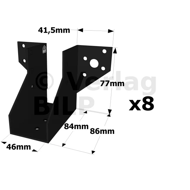Balkenschuh mit außenliegenden Schenkeln - SAE-Sortiment SCHWARZES Finish (Dicke 2mm, Tiefe 84mm) - Réf. SAE200/46/2PB_8