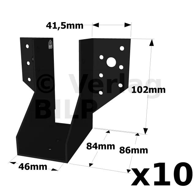 Balkenschuh mit außenliegenden Schenkeln, Schwarze Ausführung (Dicke 2mm, Tiefe 84mm) - Réf. SAE250/46/2PB_10
